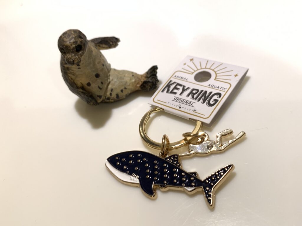 『パパのもあるよ』とジンベエザメのキーホルダーが